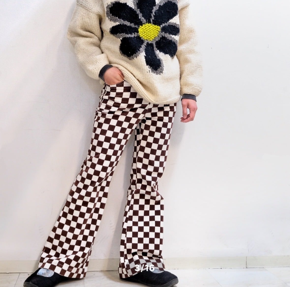 00's Checker Flag Flare Corduroy Pants With Peace Mark