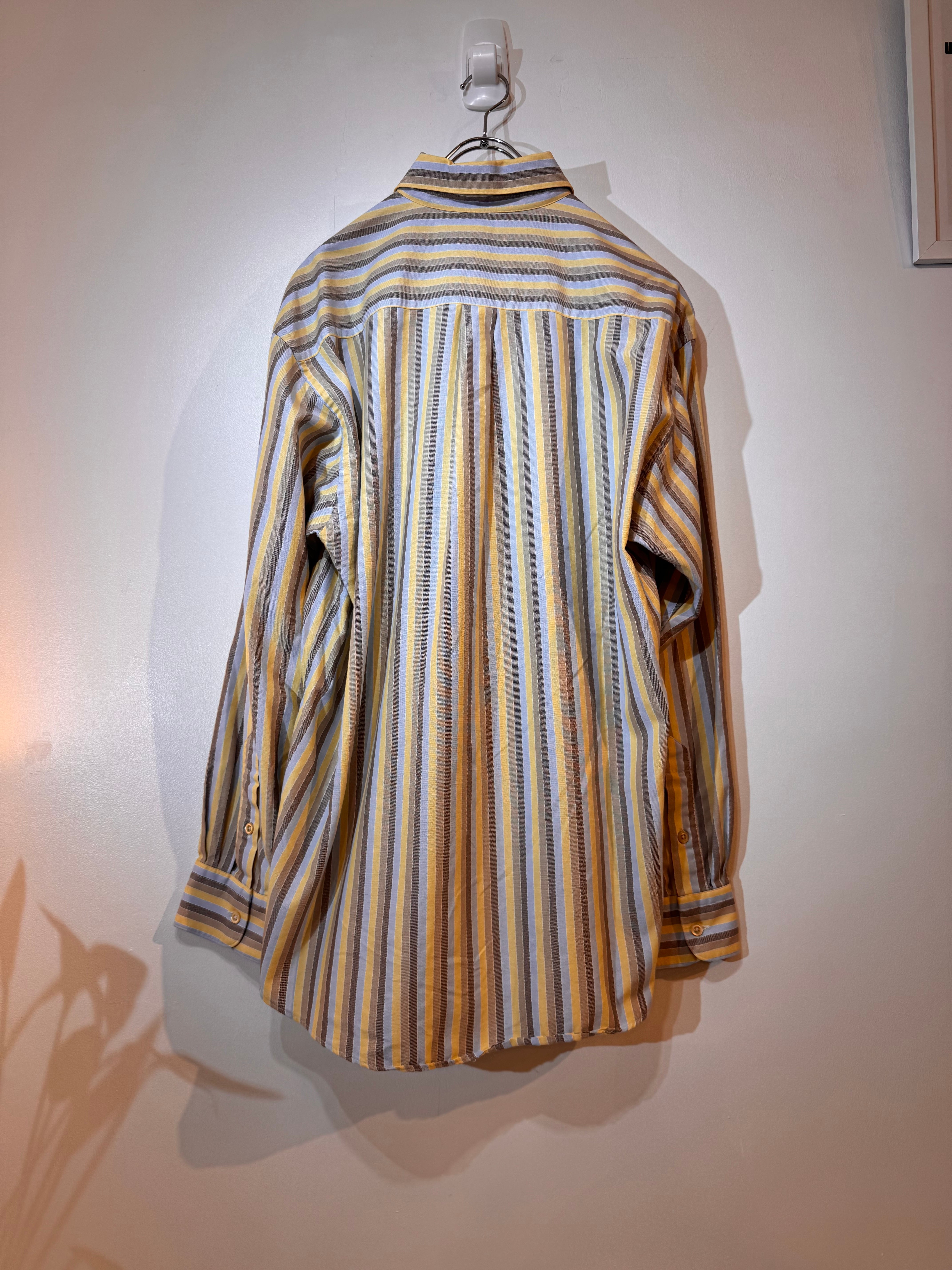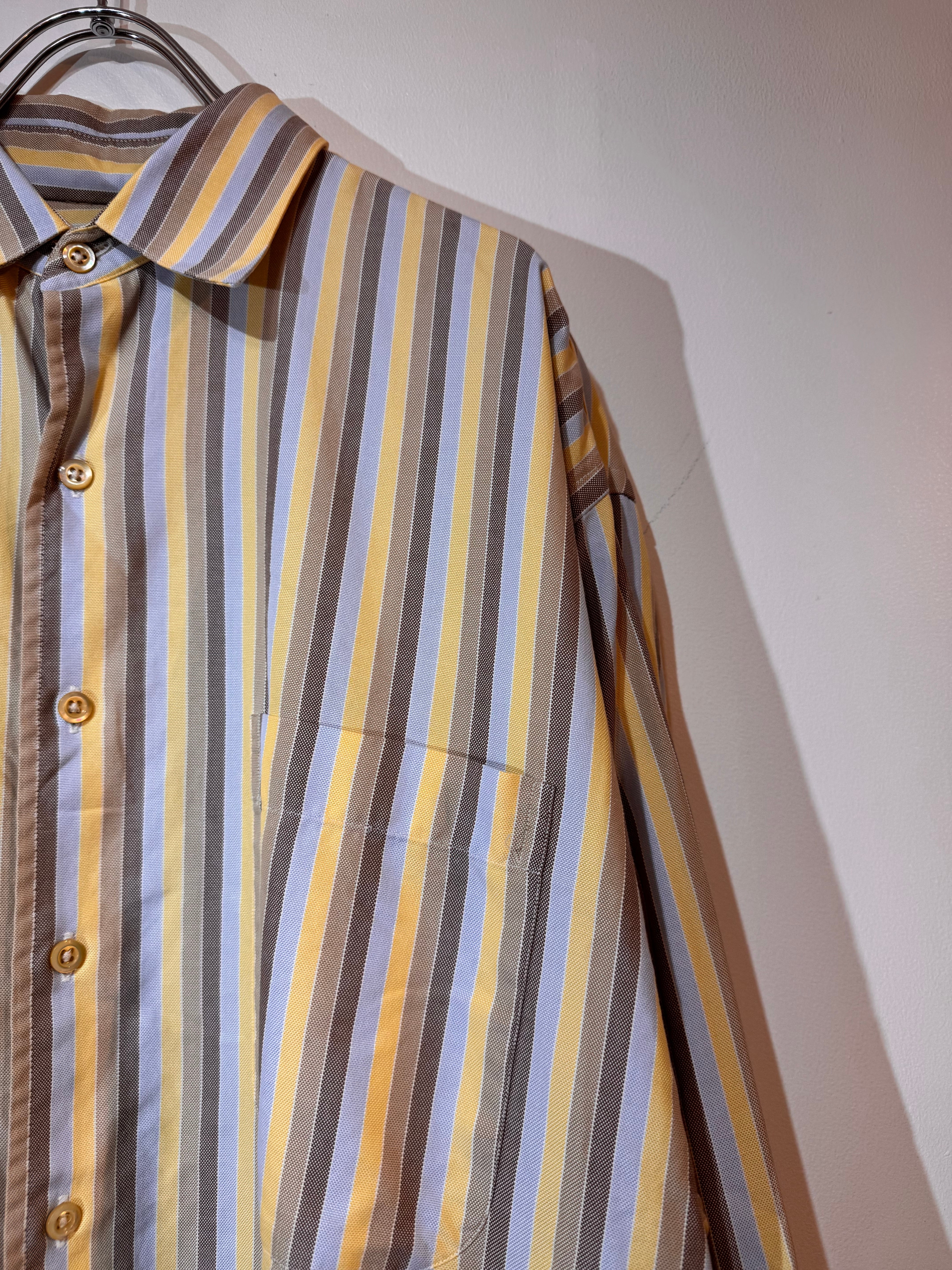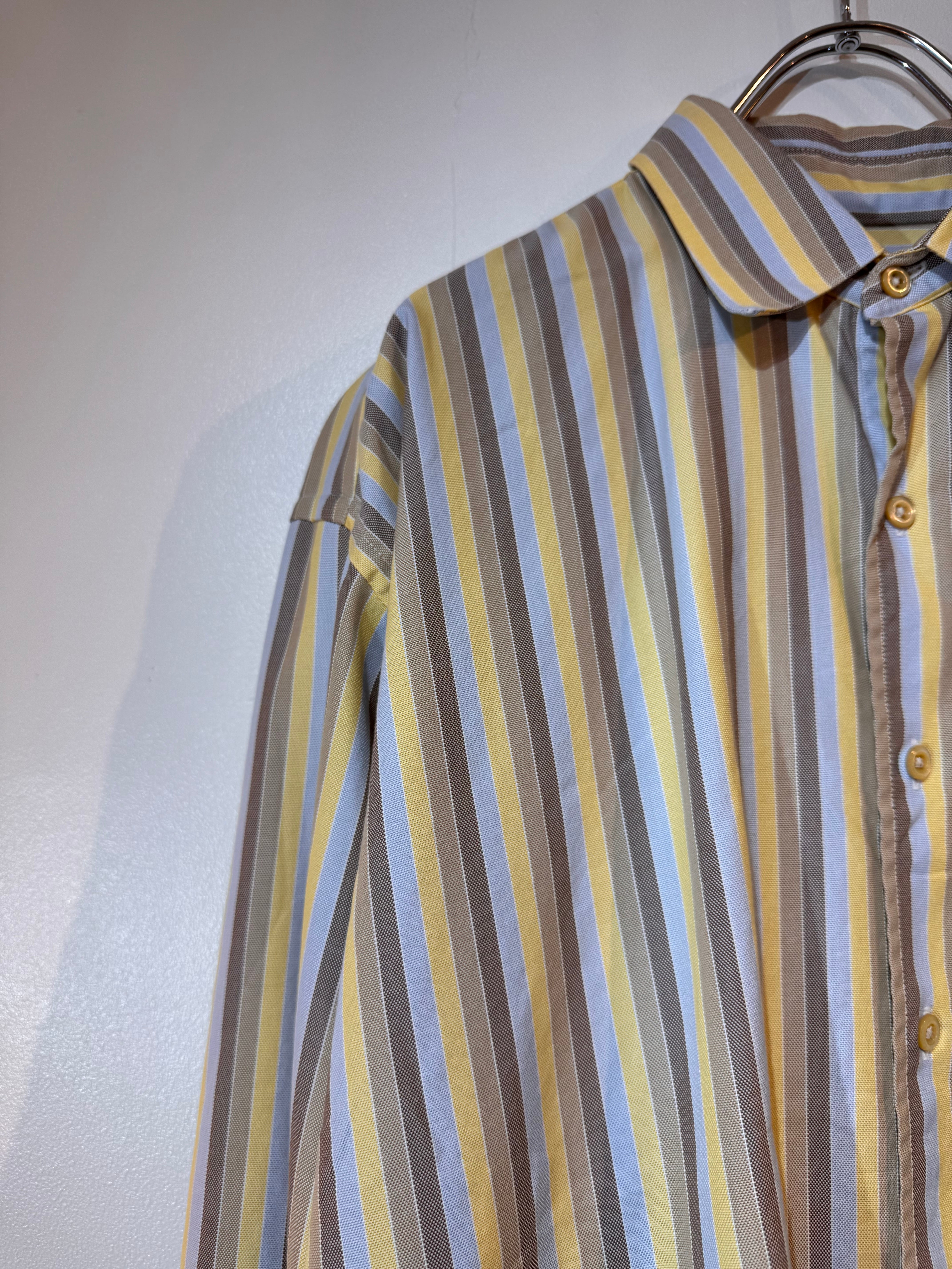 90年代頃のBurberryより、上品な配色が魅力のマルチストライプシャツ。
