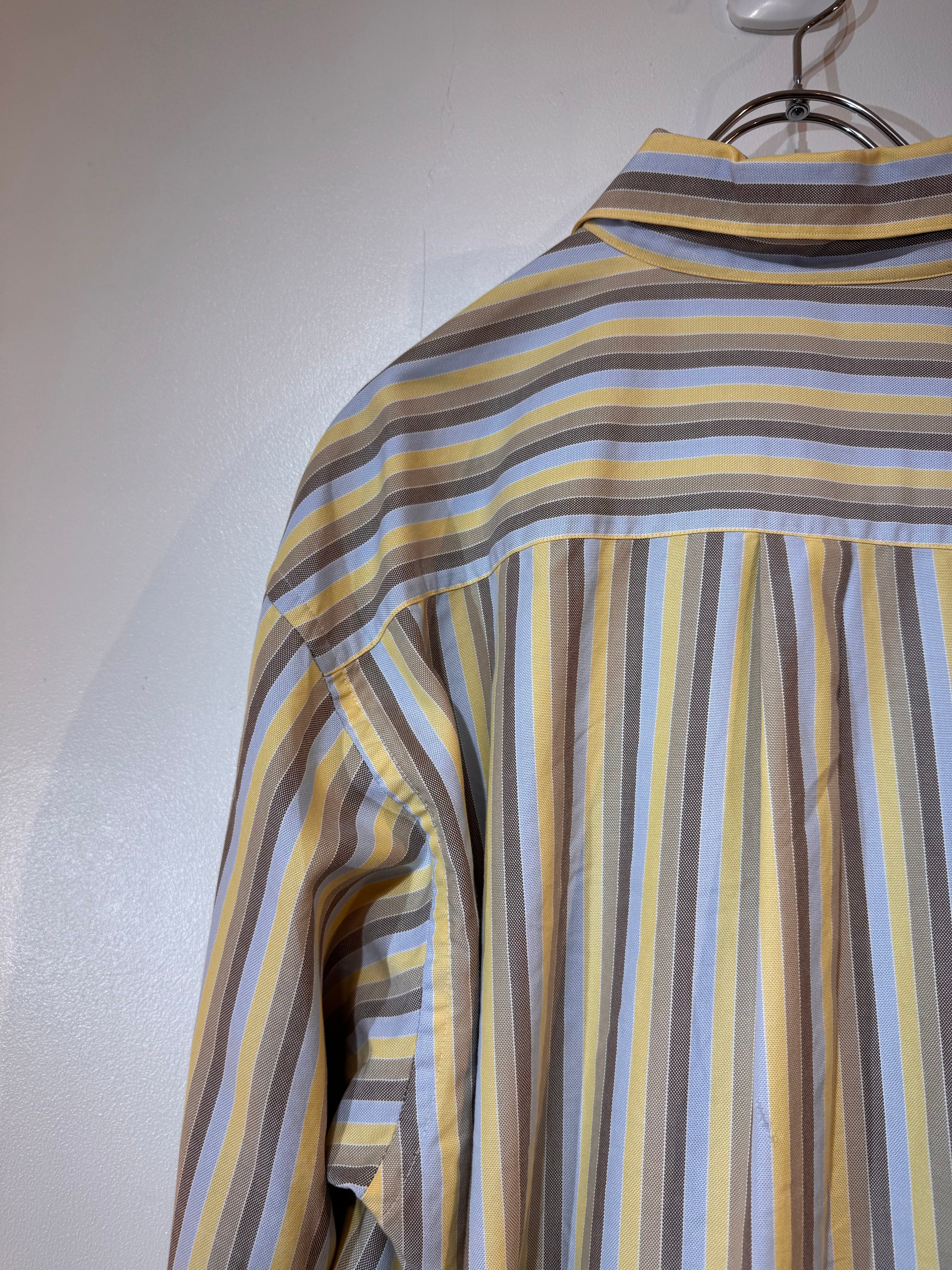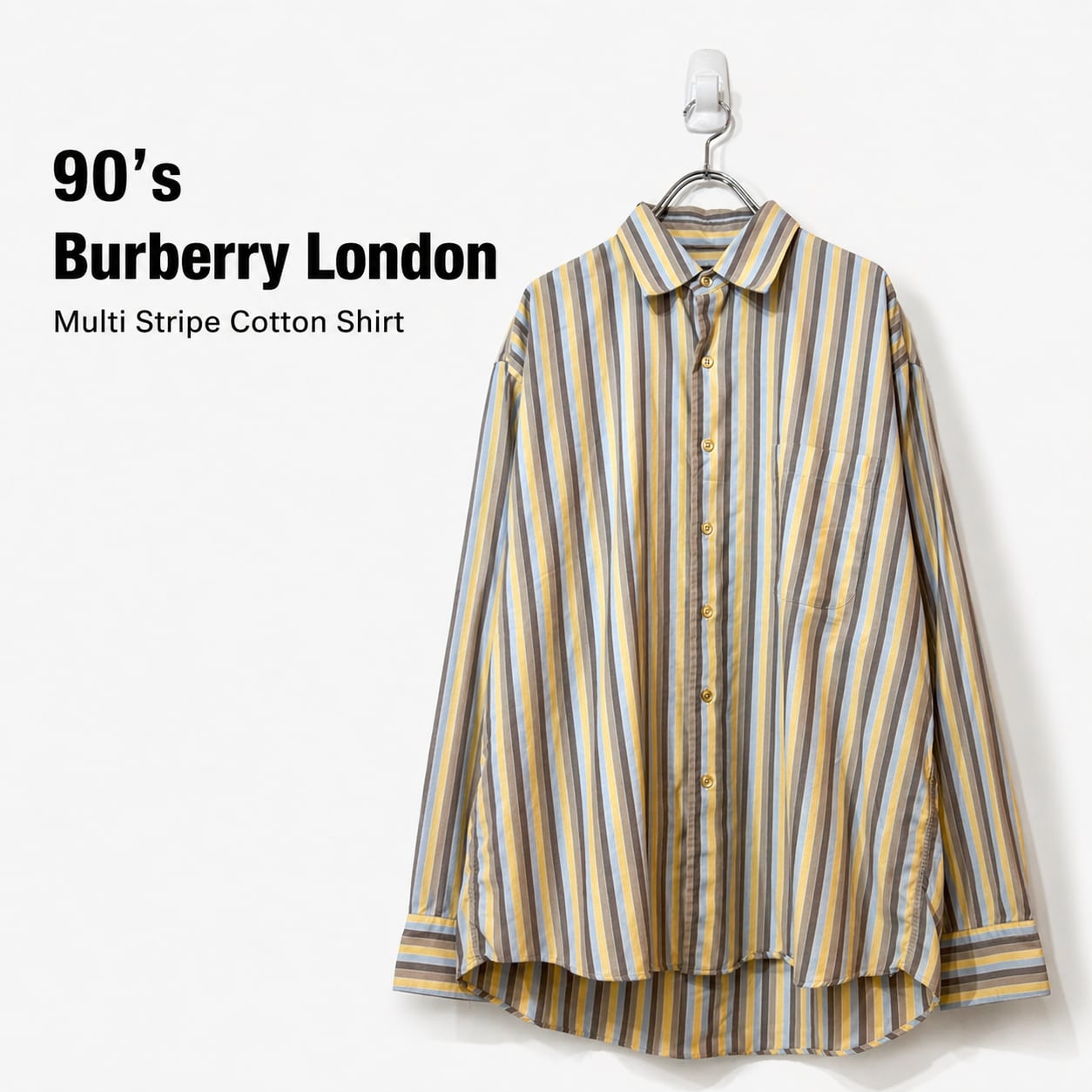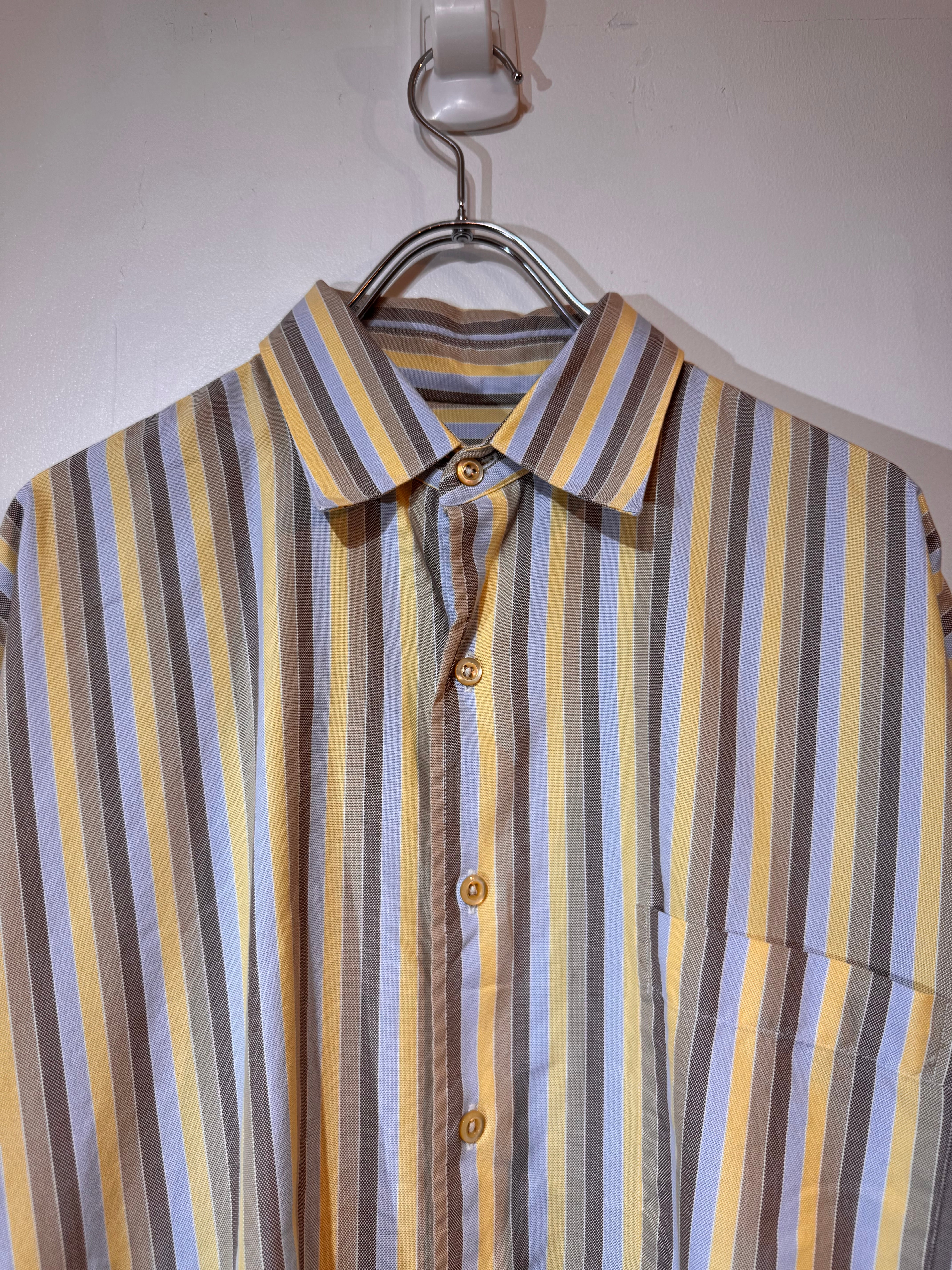 90年代頃のBurberryより、上品な配色が魅力のマルチストライプシャツ。